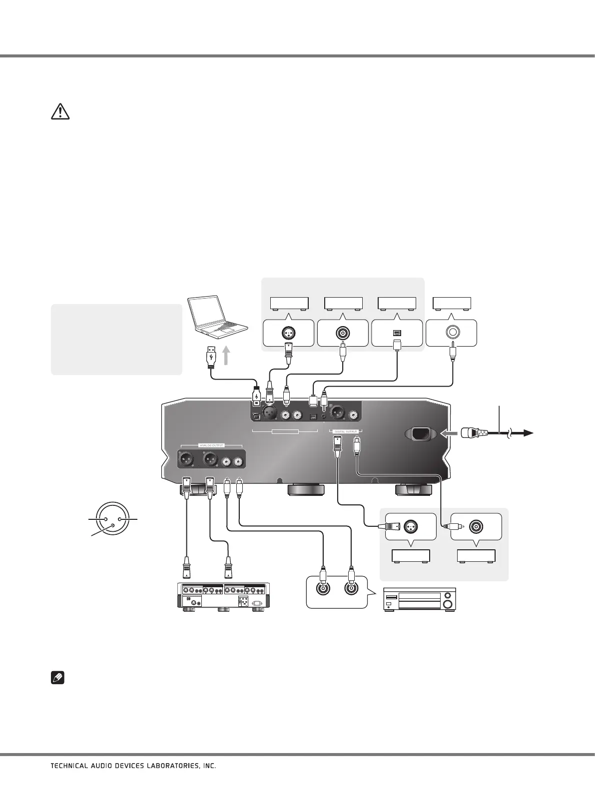 When connecting components or changing connections, always set the power switch to OFF and disconnect the power