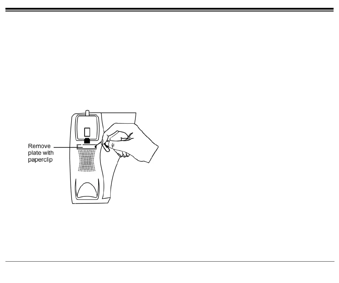 • Insert a pointed tool into the hole located on the plastic plate covering the blank telephone number, as shown in