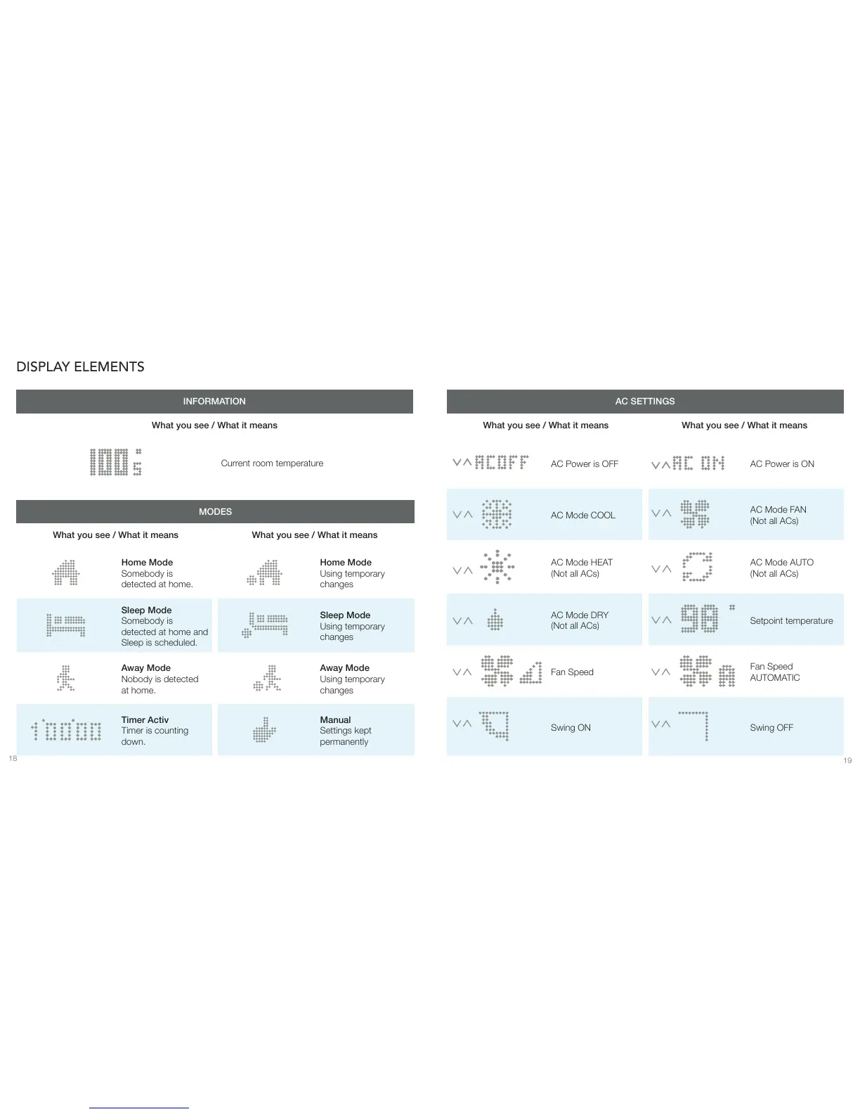 tado° Smart AC Control - Display Elements; Information; Modes; Ac Settings