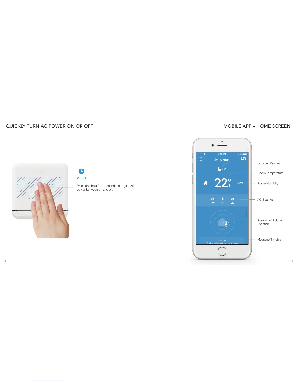 tado° Smart AC Control - Device and App Interaction; Quick AC Power Control; Mobile App Home Screen