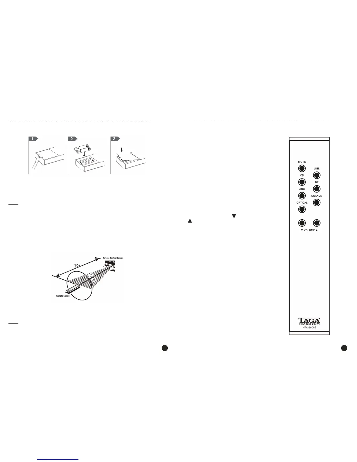 Use the remote control within a range of 7 meters from the amplifier and angles of up to