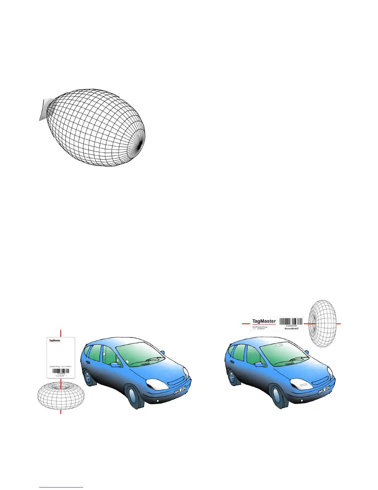 If the reader is mounted beside the car, the tag should be mounted with the donut lying as shown in the left