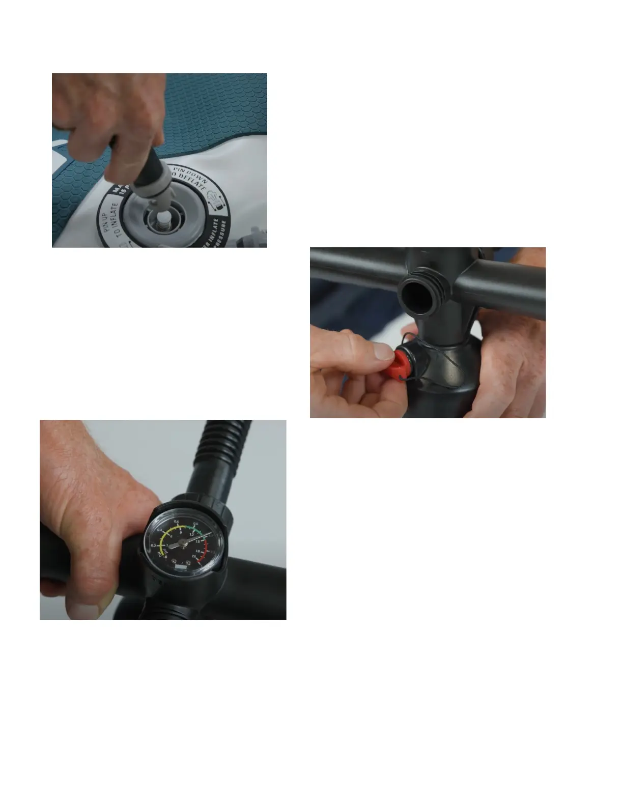 pressure until the board is very firm. Keep inflating and monitor the gauge – you will slowly