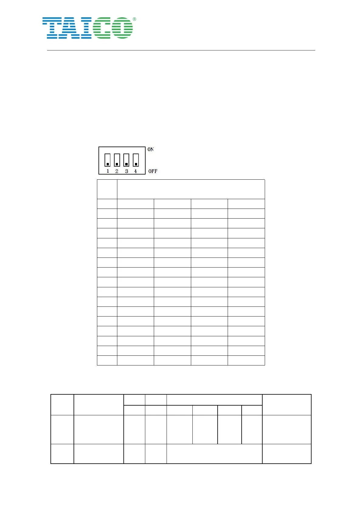 the same PACK, the definition of the dial switch is referred to the table below.