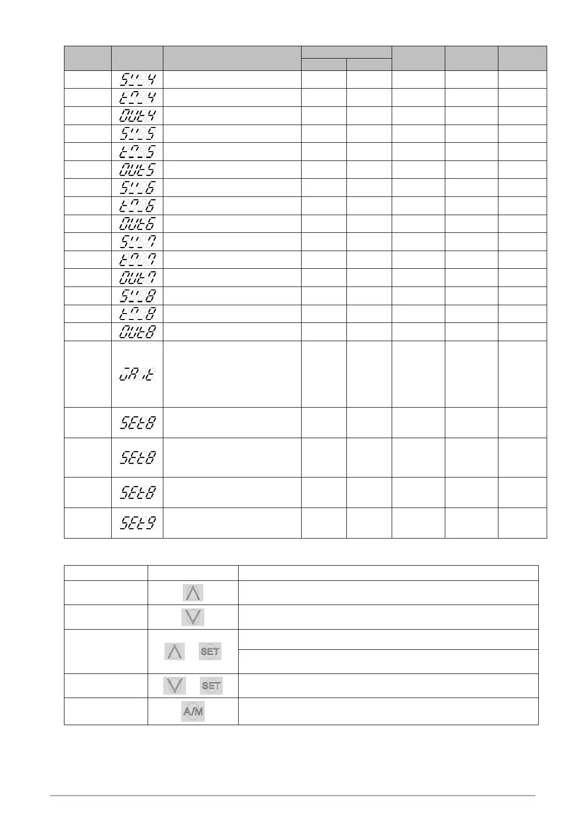 Holding UP key and press SET key 1 time to skip 1 segment, press SET key 2 times