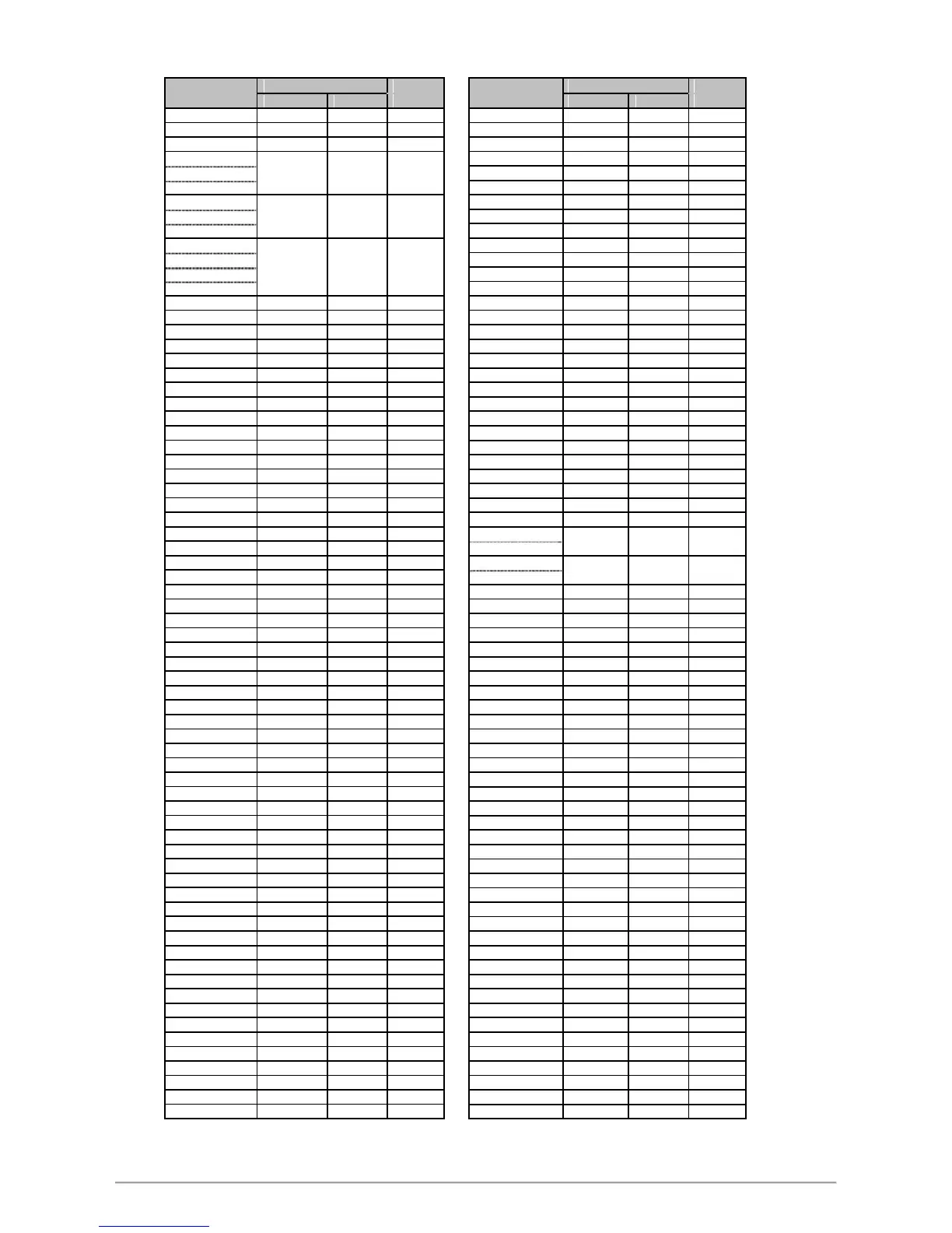 18. FY/FU Communication Register Address Table