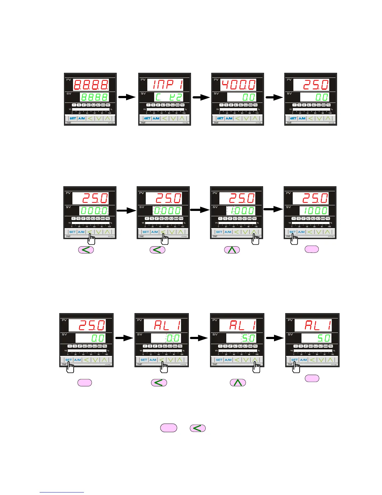 Change AL1 value to “5.0” (AL1 active, if PV exceeds SV over 5.0)