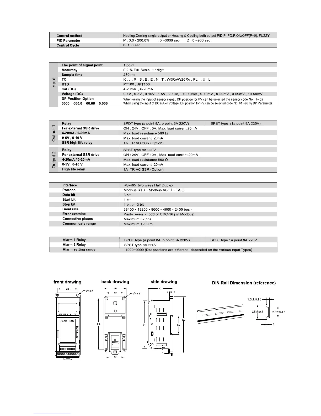 Taie FY100 - Outer Dimension