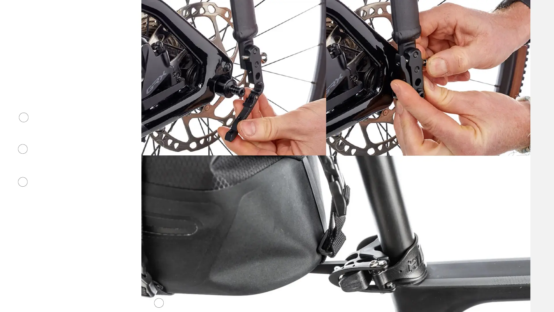 Tailfin AeroPack - Attach AeroPack to Bike; Open Fast Release Dropouts; Clamp Dropouts to Frame; Secure Seat Post Connector