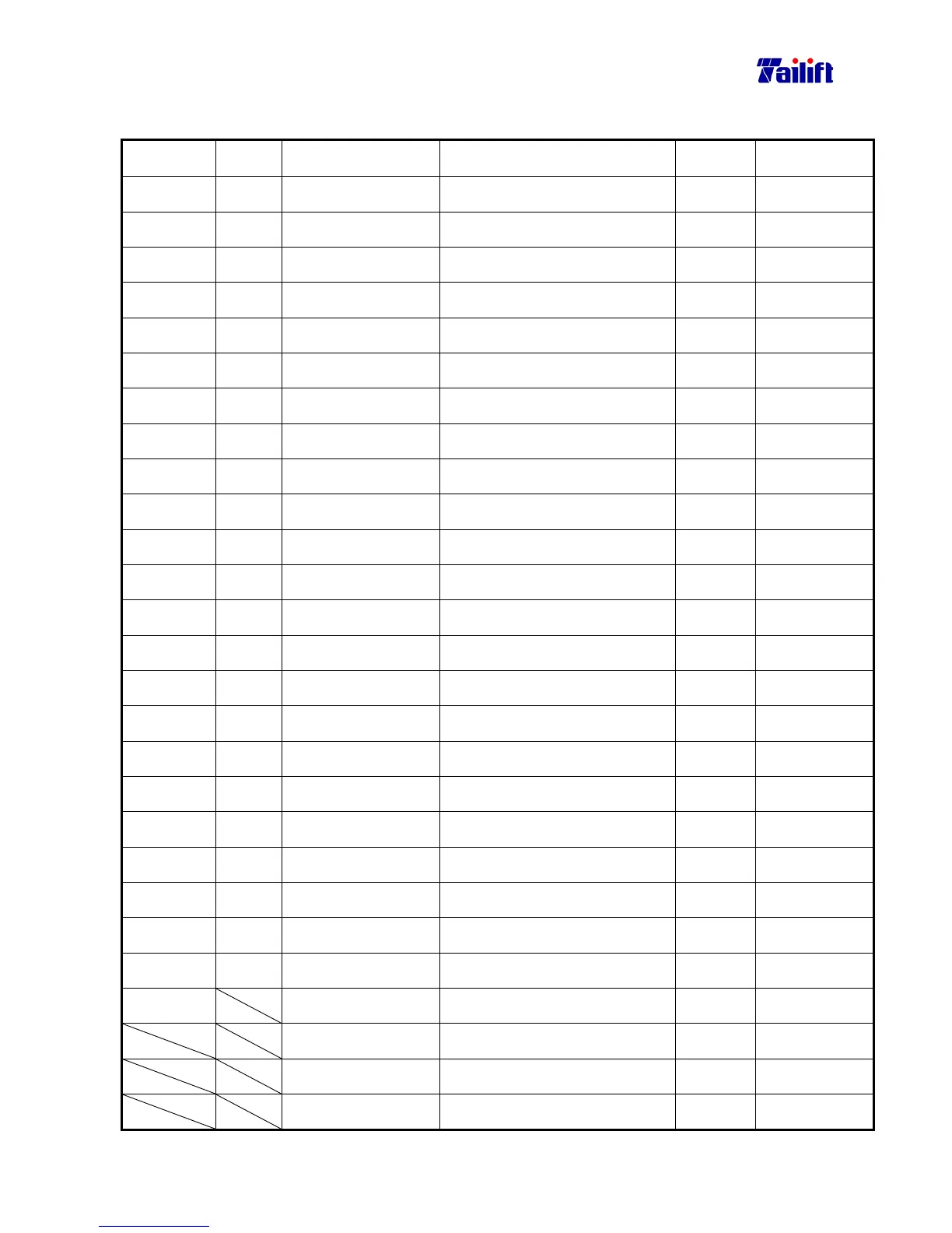 Tailift TPR1230 - Electrical Main Parts List (for TPR-2000 H Standard)