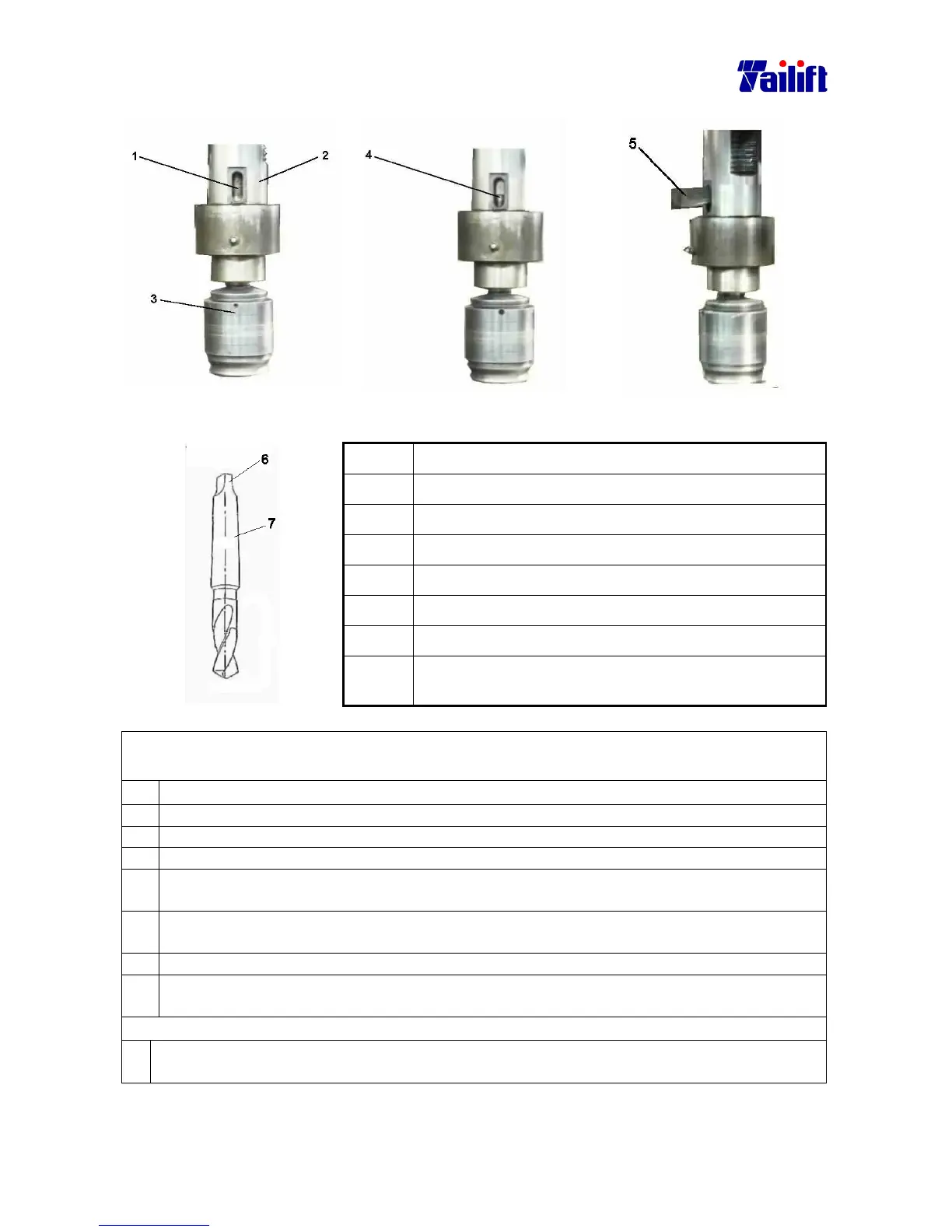 h. Hit the end of the pin for releasing drill bit, using plastic hammer or copper bar, till the