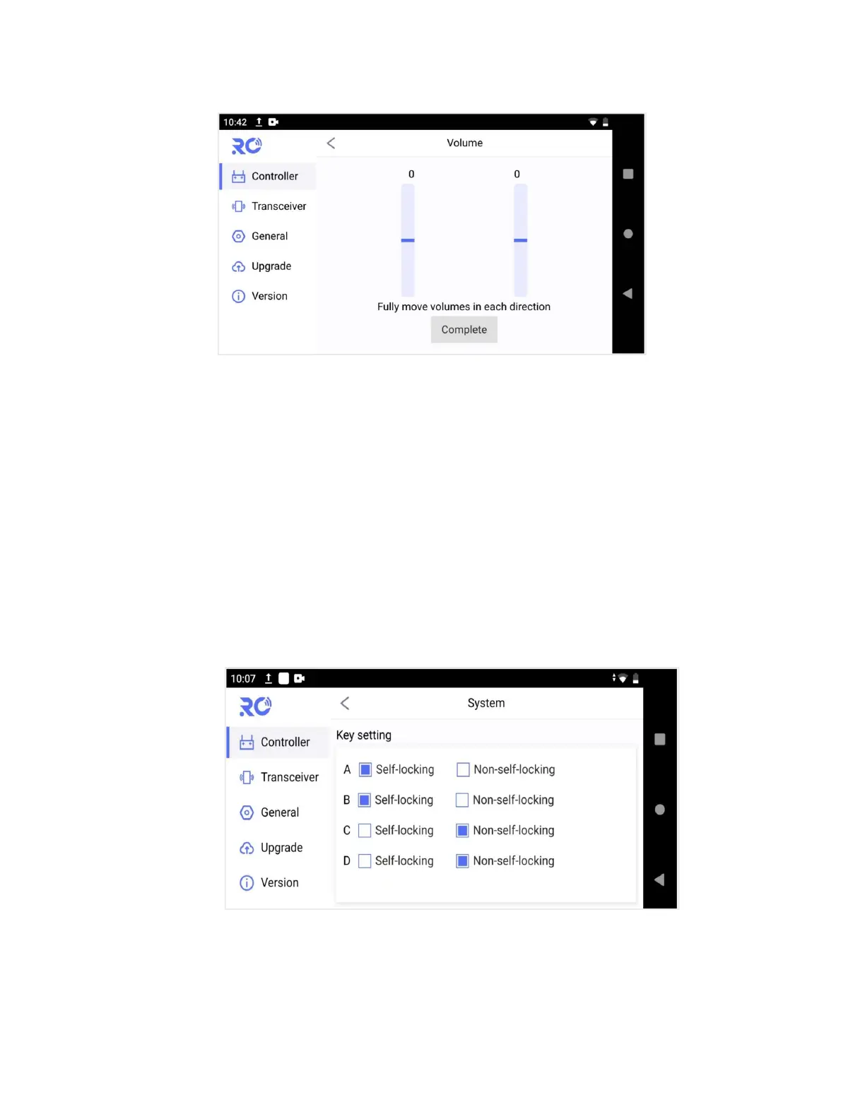 Button mode setting, stick mode setting and restore factory settings can be made at system page.