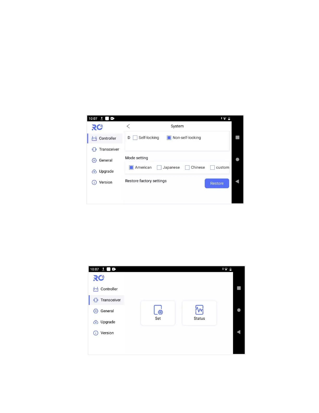 There is radio transmitter and receiver integrated in the remote control system. User can check the