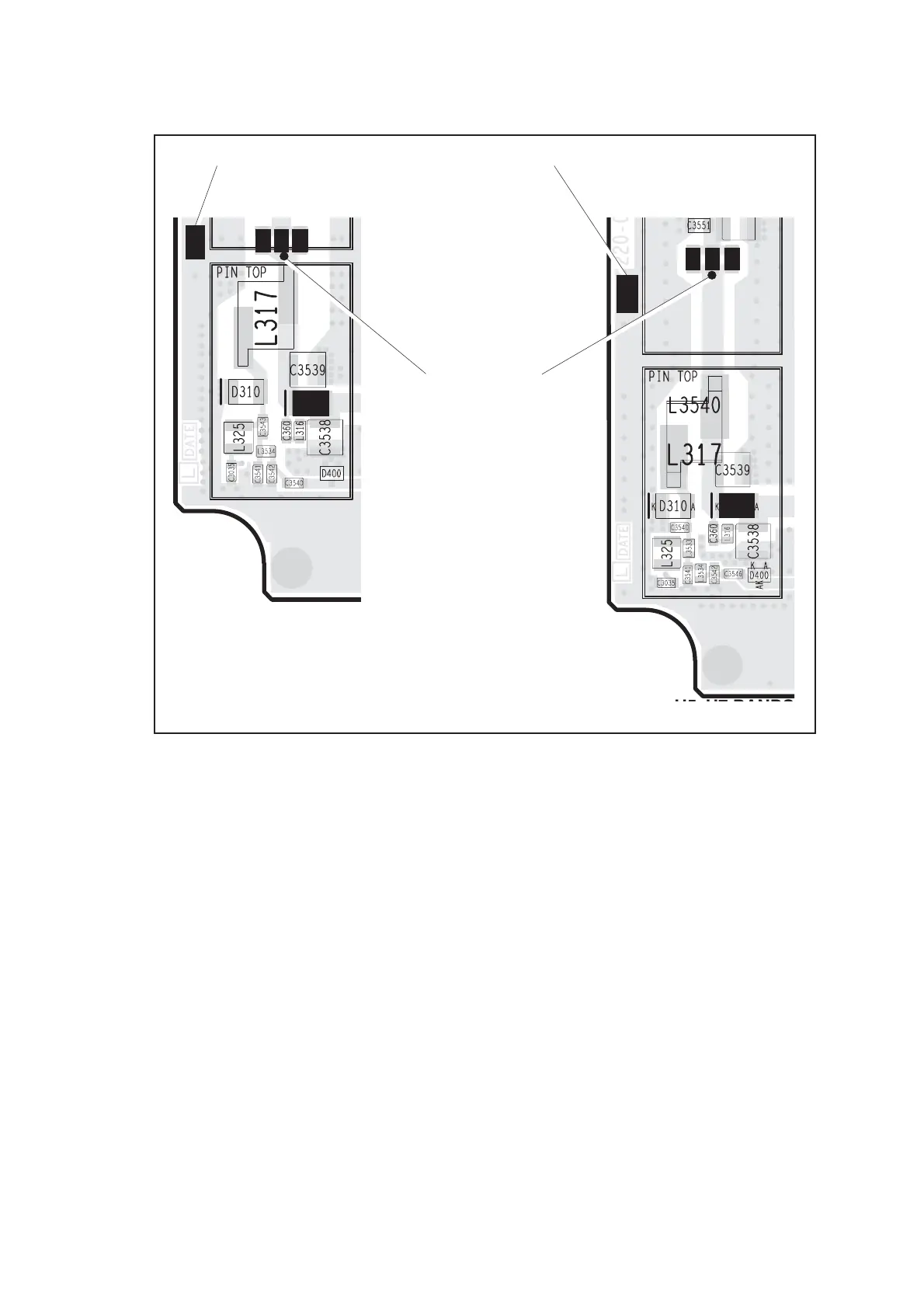 Figure 11.21 Circuitry under the PIN TOP can, and points for attaching the test lead and test capacitor