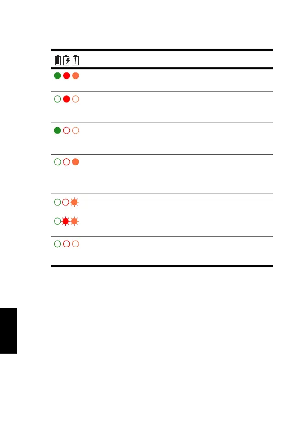 如果给充电器供电时充电器内放有电池,LED 将有如下显示 :