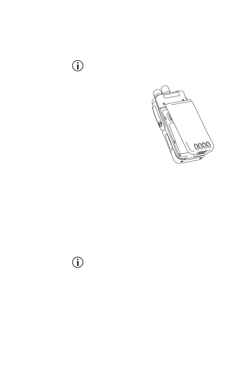The battery is secured to the radio by a battery catch