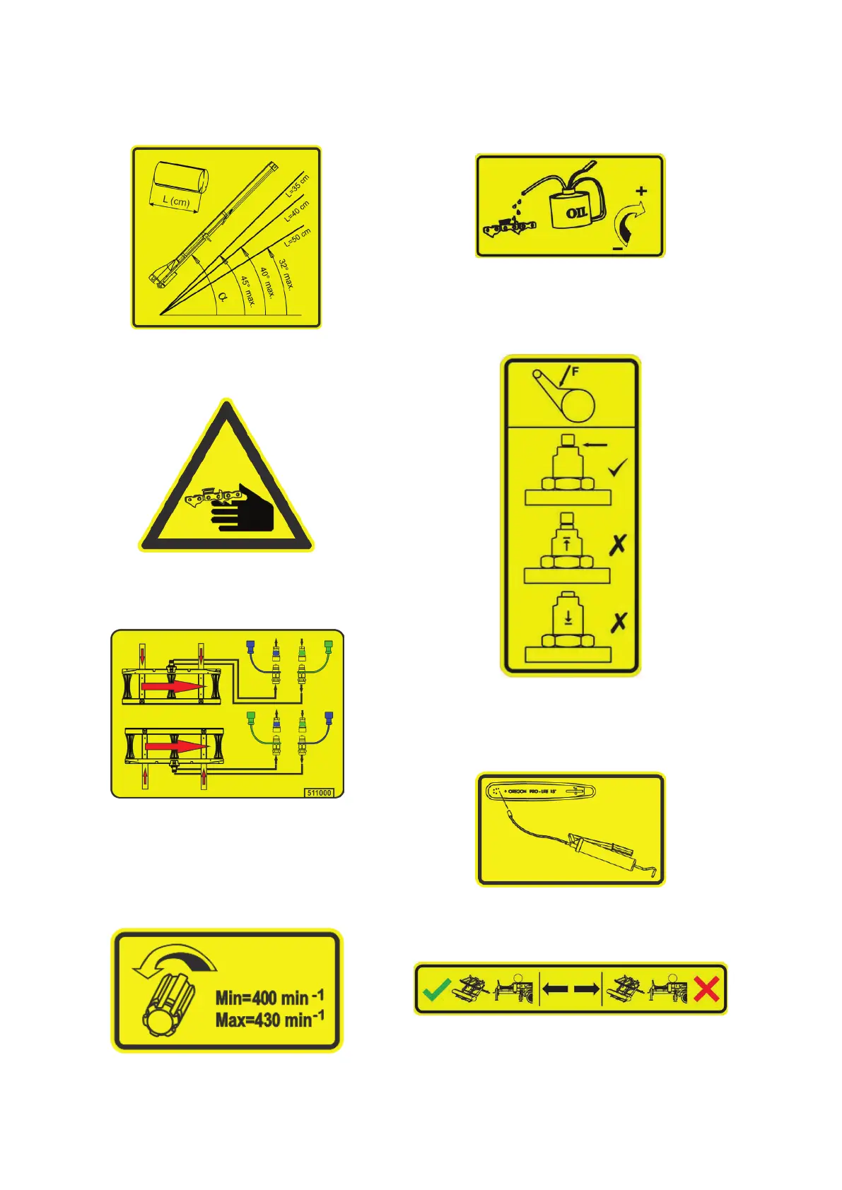 Proper direction of the PTO shaft rotation.
