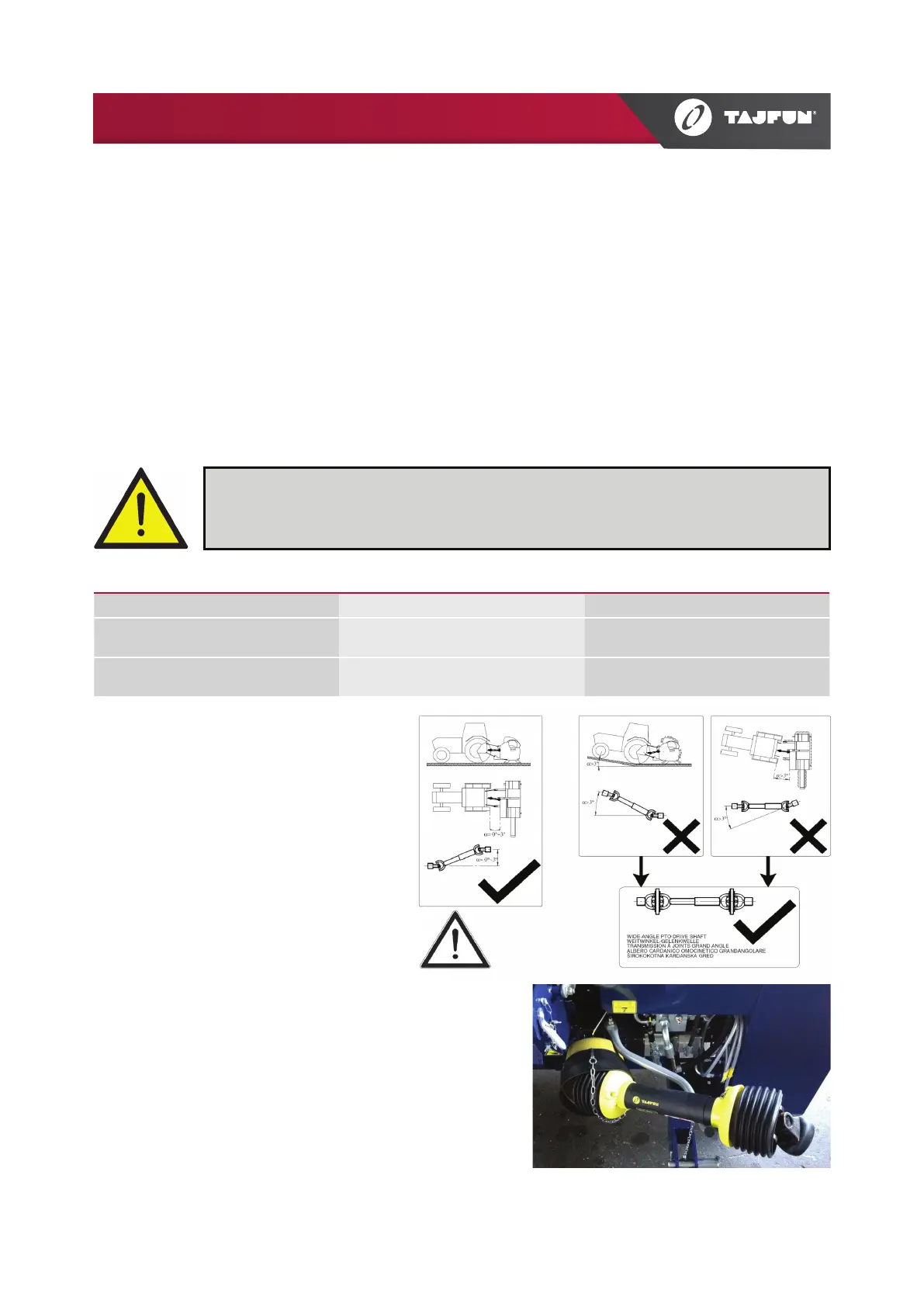 Check the length of the PTO shaft upon rst installation.