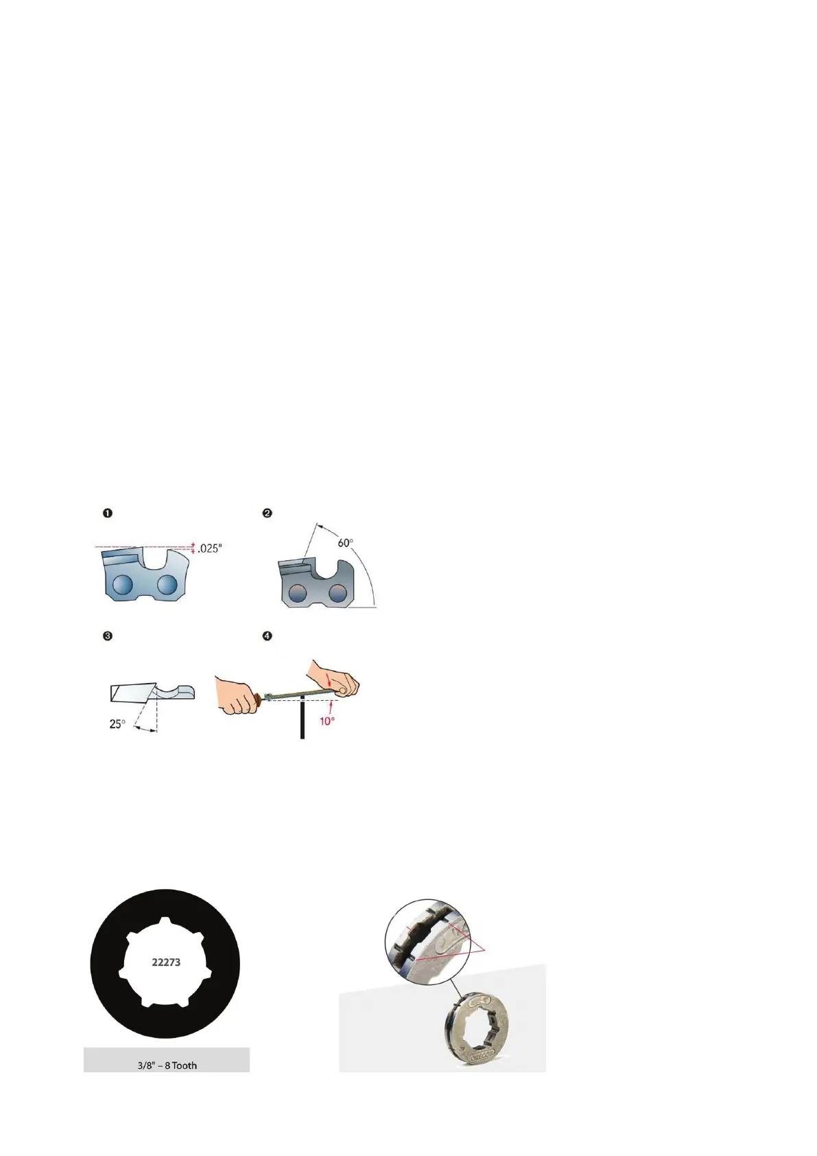 Use only OREGON Power mate 3/8” sprockets (OREGON No. 22273). The sprocket has a wear indicator