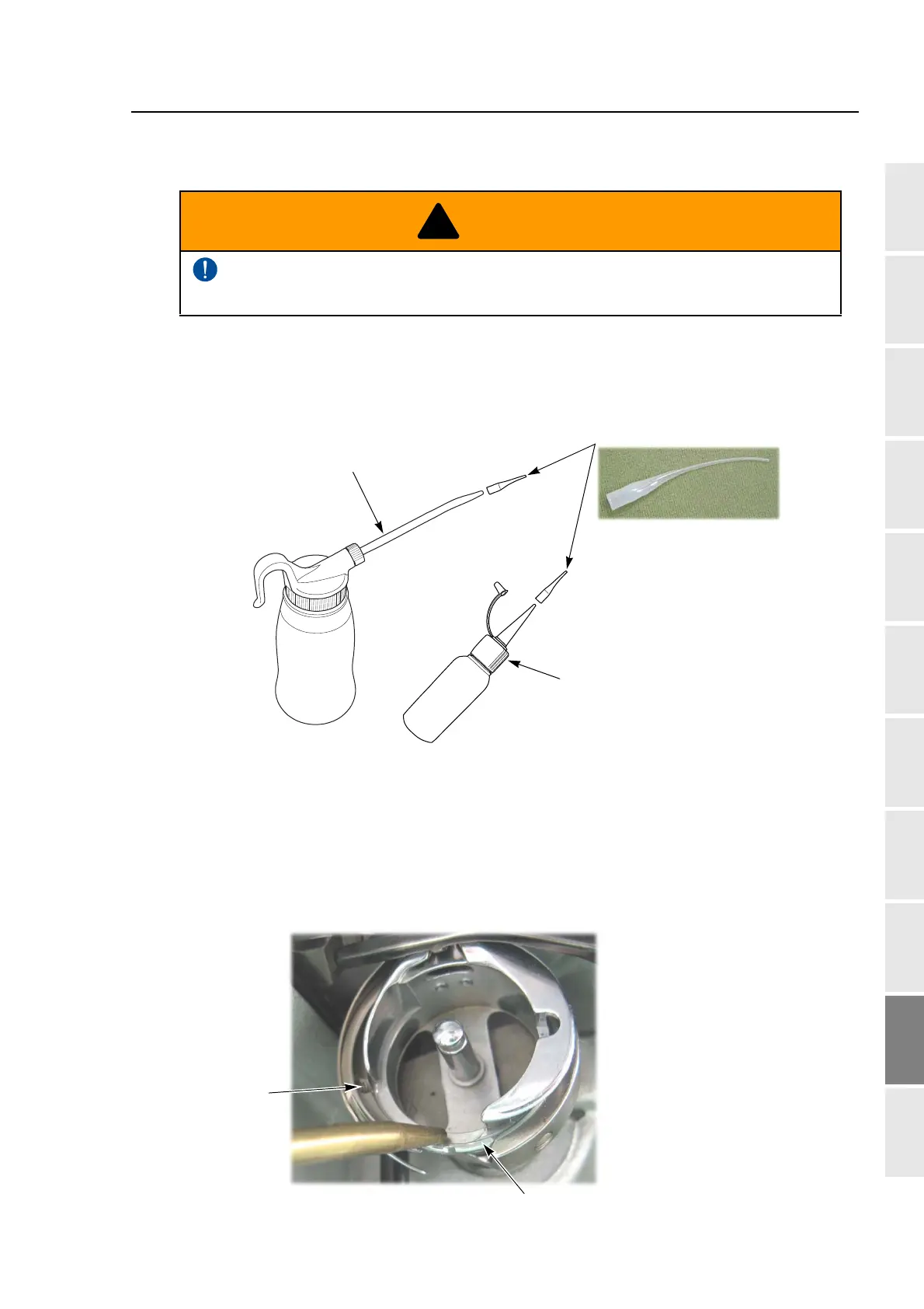lubrication hole, attach the nozzle (accessory) to the tip of the oiler. Cut the tip of the nozzle