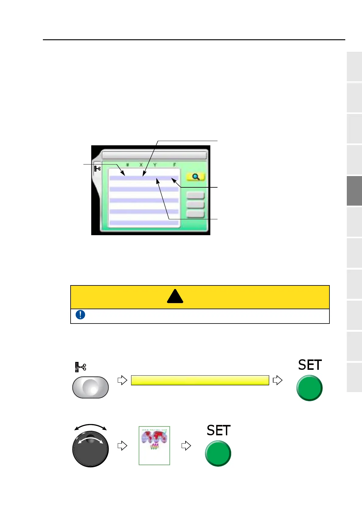 When this operation is performed in the middle of embroidery, data set will be canceled. If stitch length after