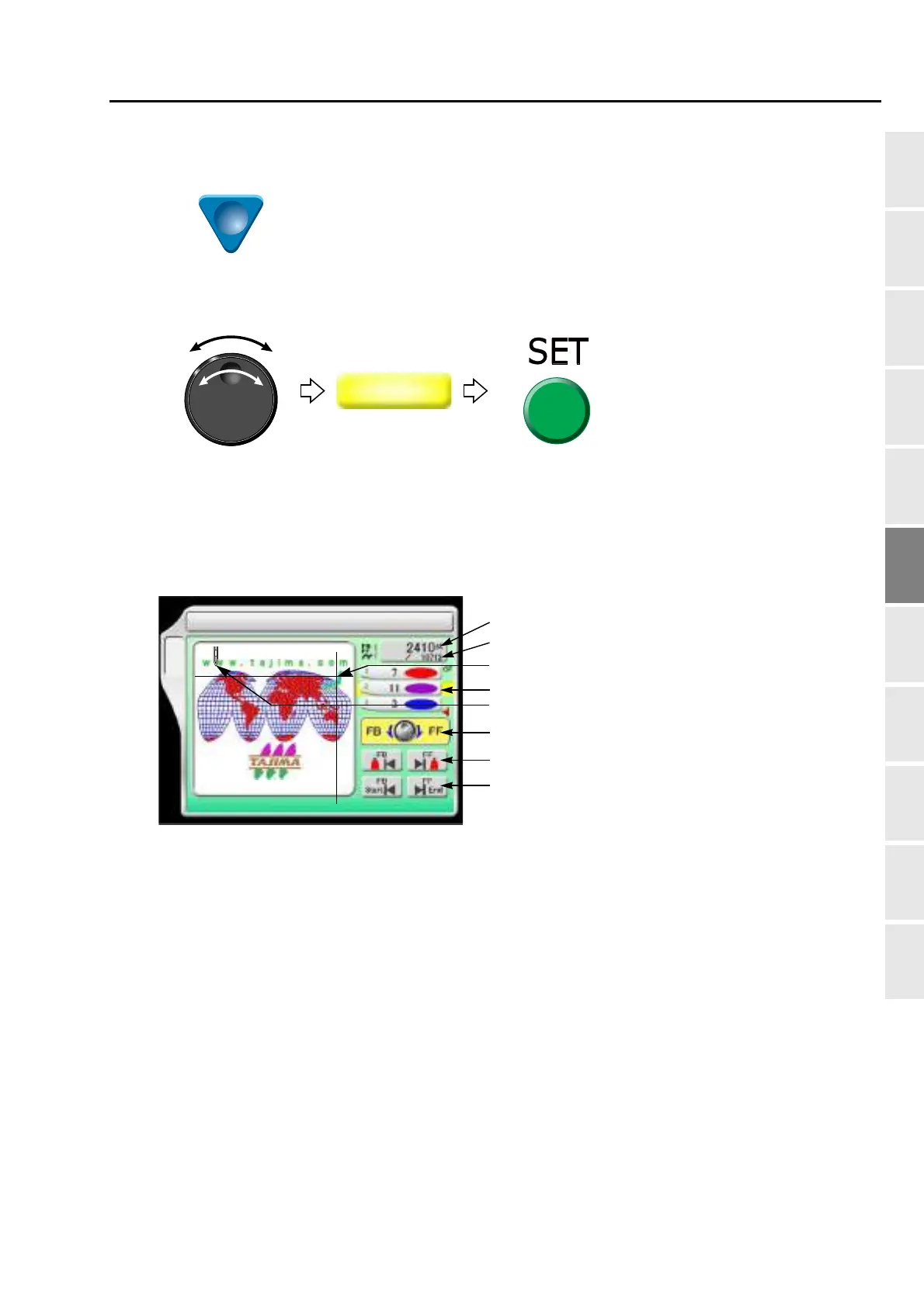 1-3. To specify the needle position (stitch number) and perform FB/FF (Needle position