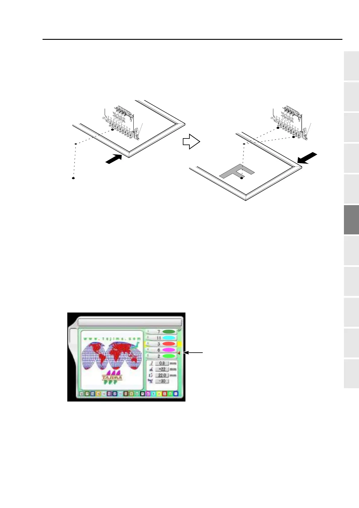 5-2. To move the frame automatically at the start, in the middle and the end of embroidery