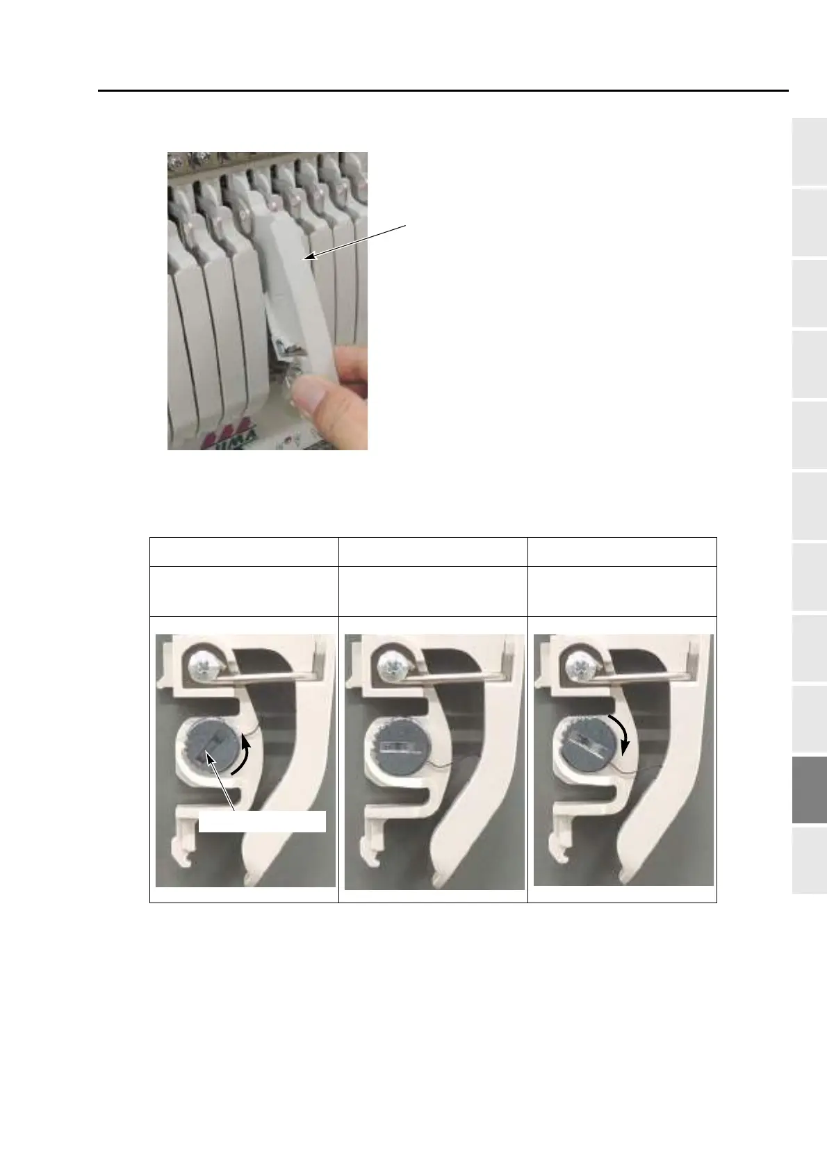 (3) To adjust stroke of the thread take-up spring, put some coin, etc. in the groove of the spring shaft and