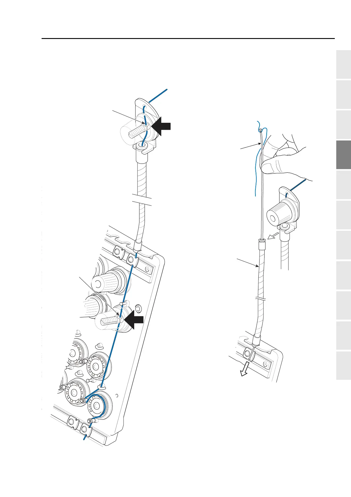 (3) Put the thread into the groove of the tension stud. (Indicated by an arrow)