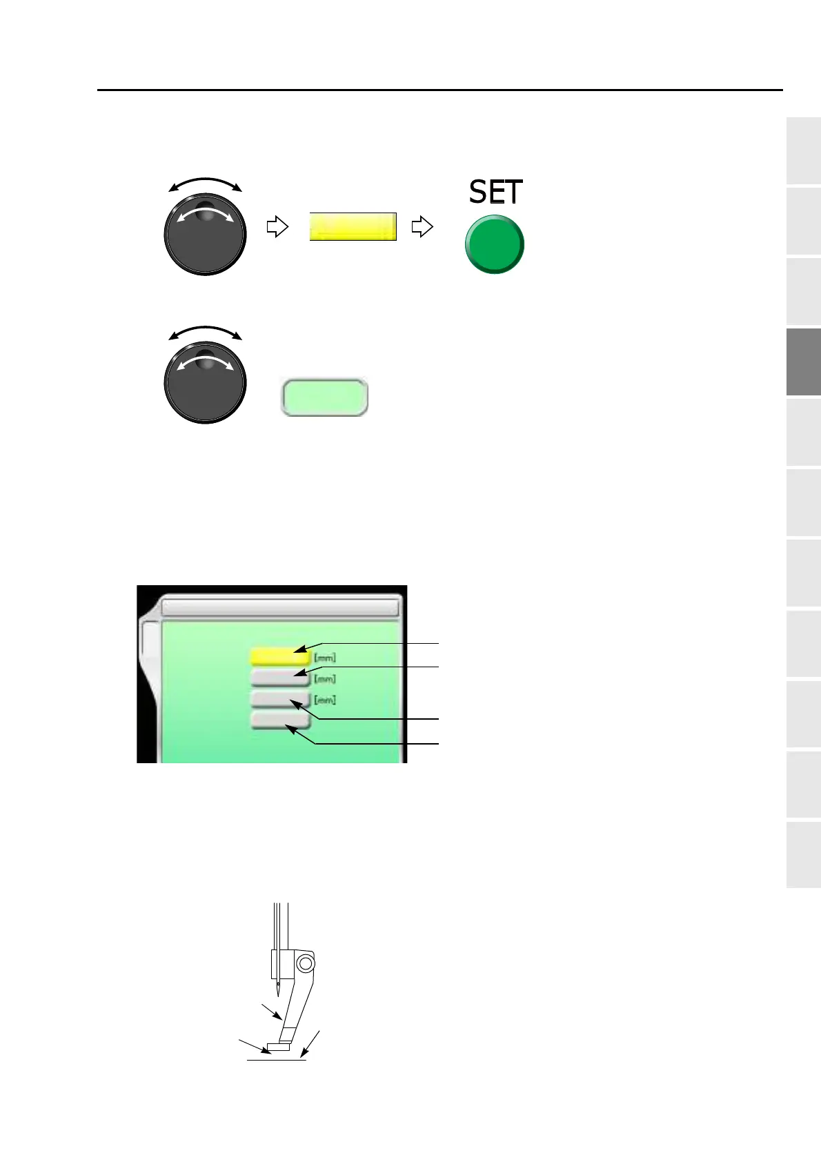 [a] Distance between the presser foot and the needle plate when the presser foot moves down to