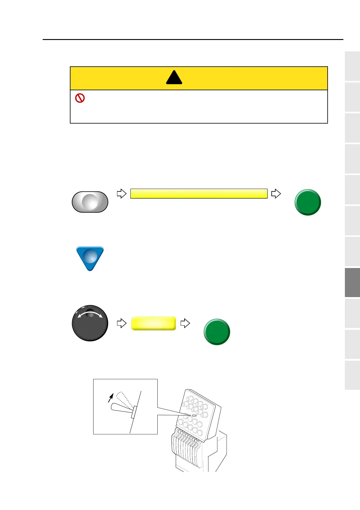 When performing this operation, do not put your hands etc. near the needle or on the