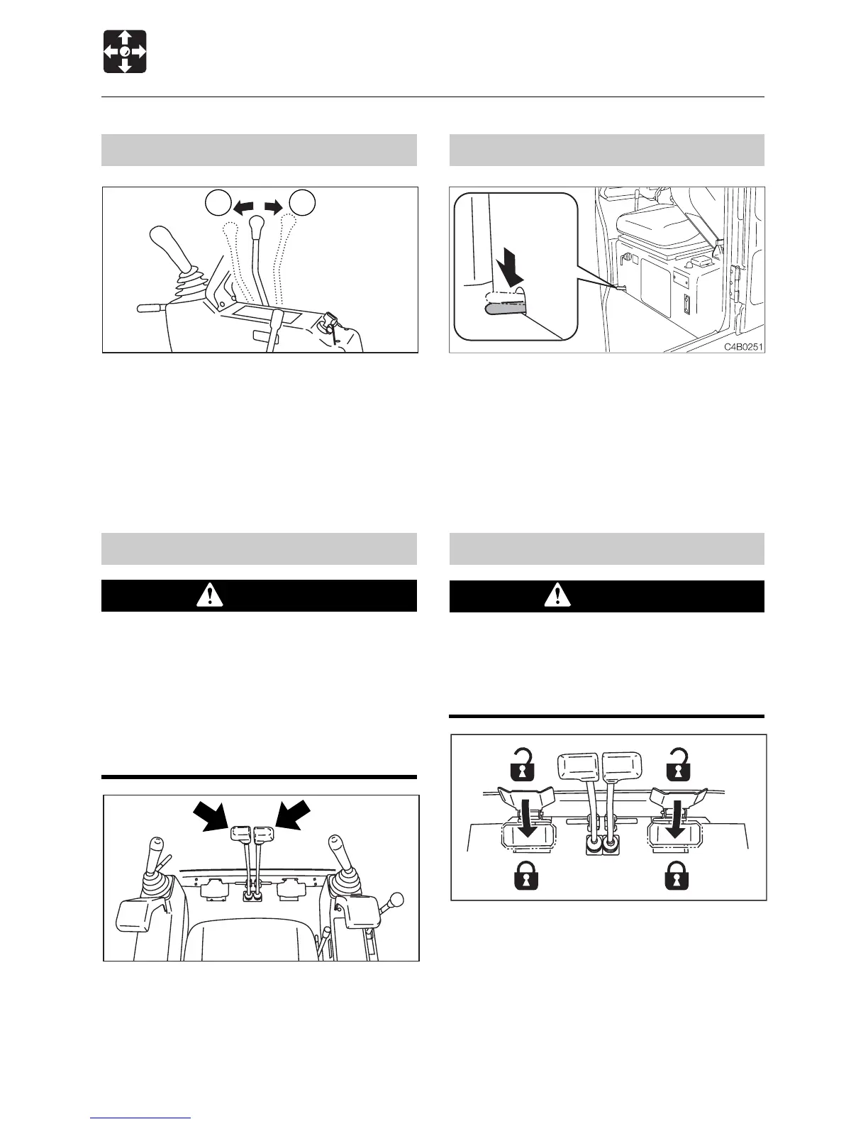 Before operating the travel levers, check