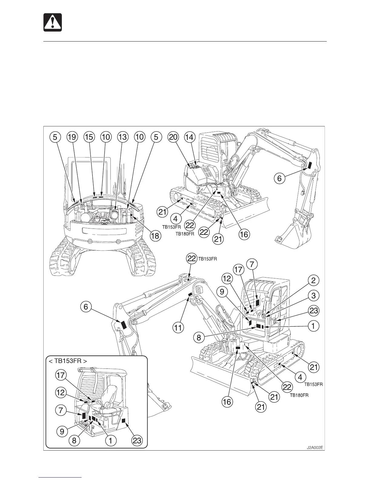 this manual, walk around your machine and note the content and location of these safety