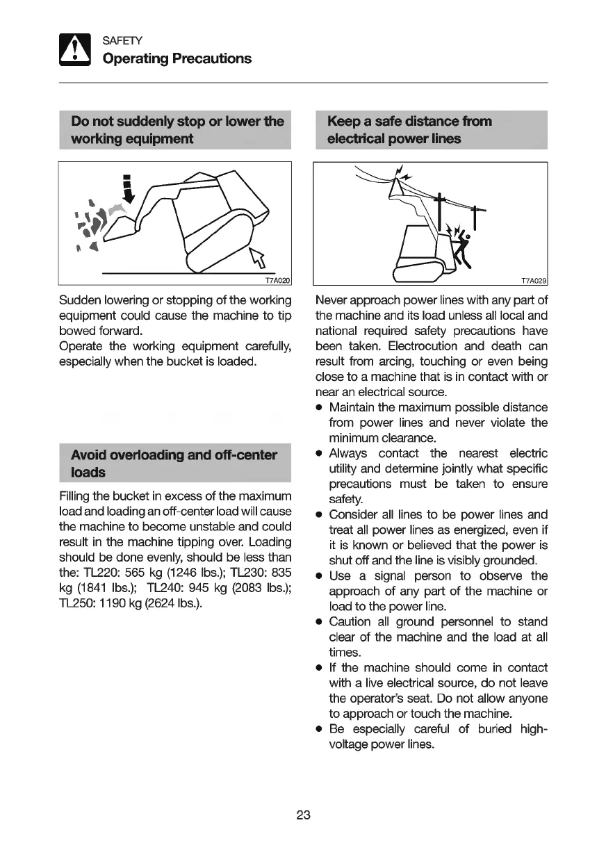 the: TL220: 565 kg (1246 lbs.); TL230: 835