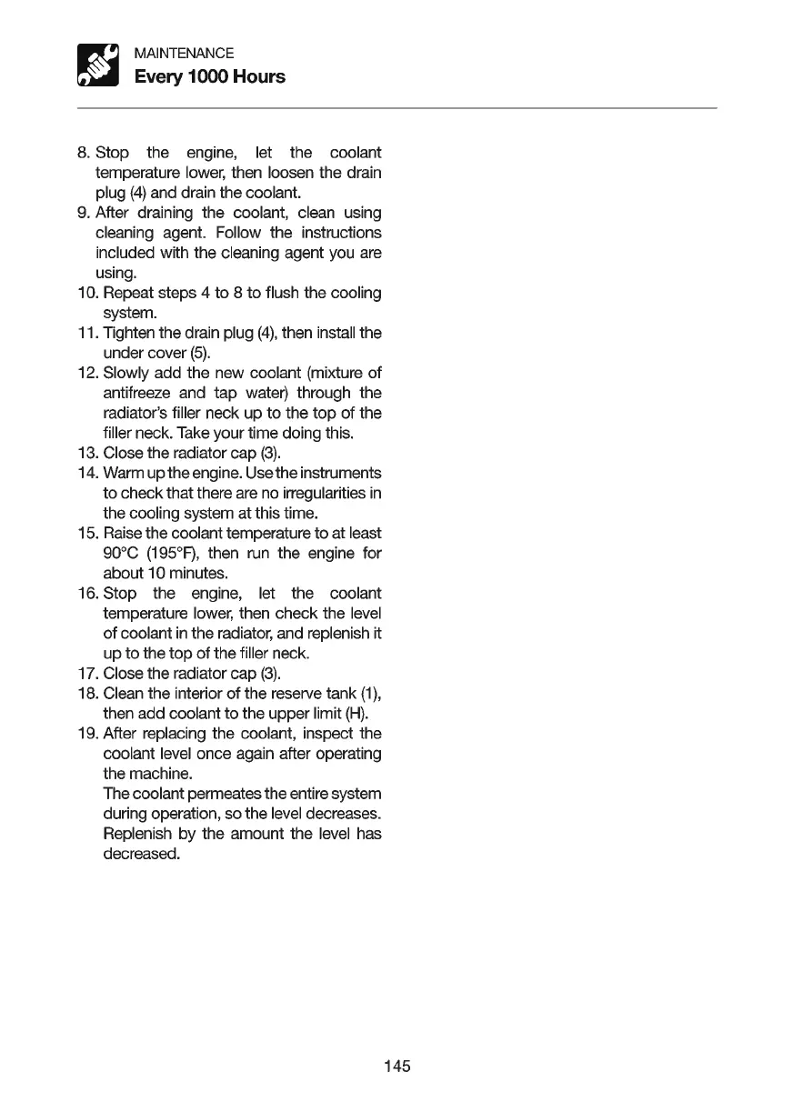 8. Stop the engine, let the coolant