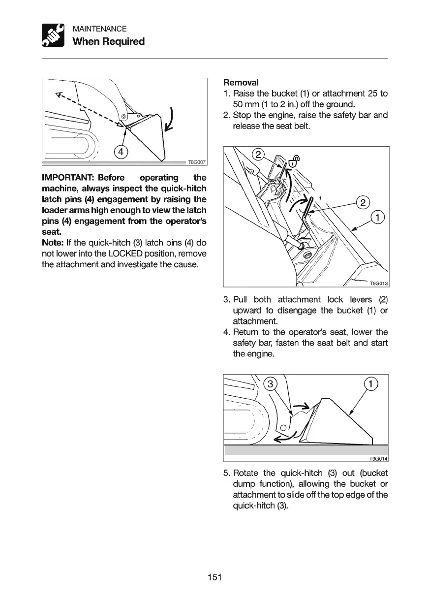 machine, always inspect the quick-hitch