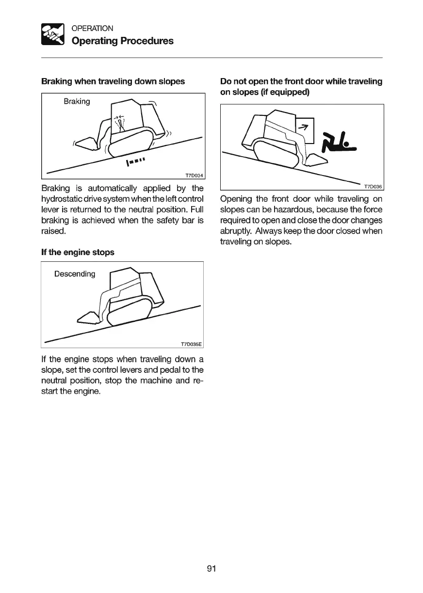 slope, set the control levers and pedal to the