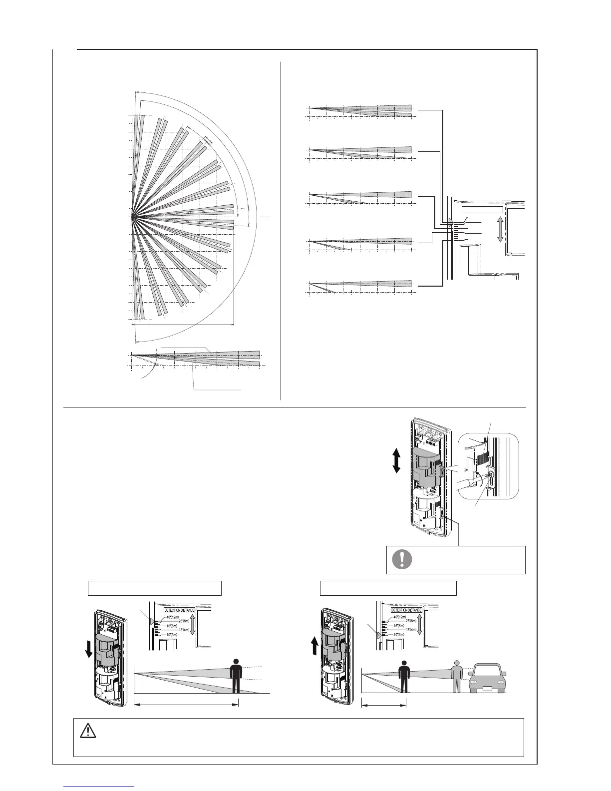 Detection distance is set by adjusting the angle of downward zone.