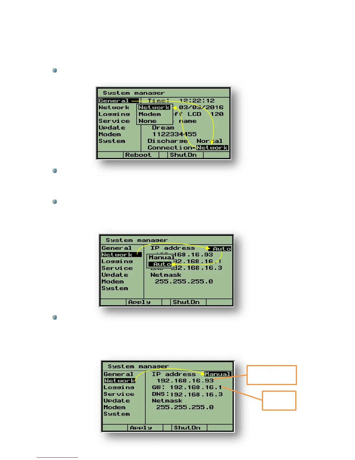 be selected and then the IP address and the Gate Way address can be manually
