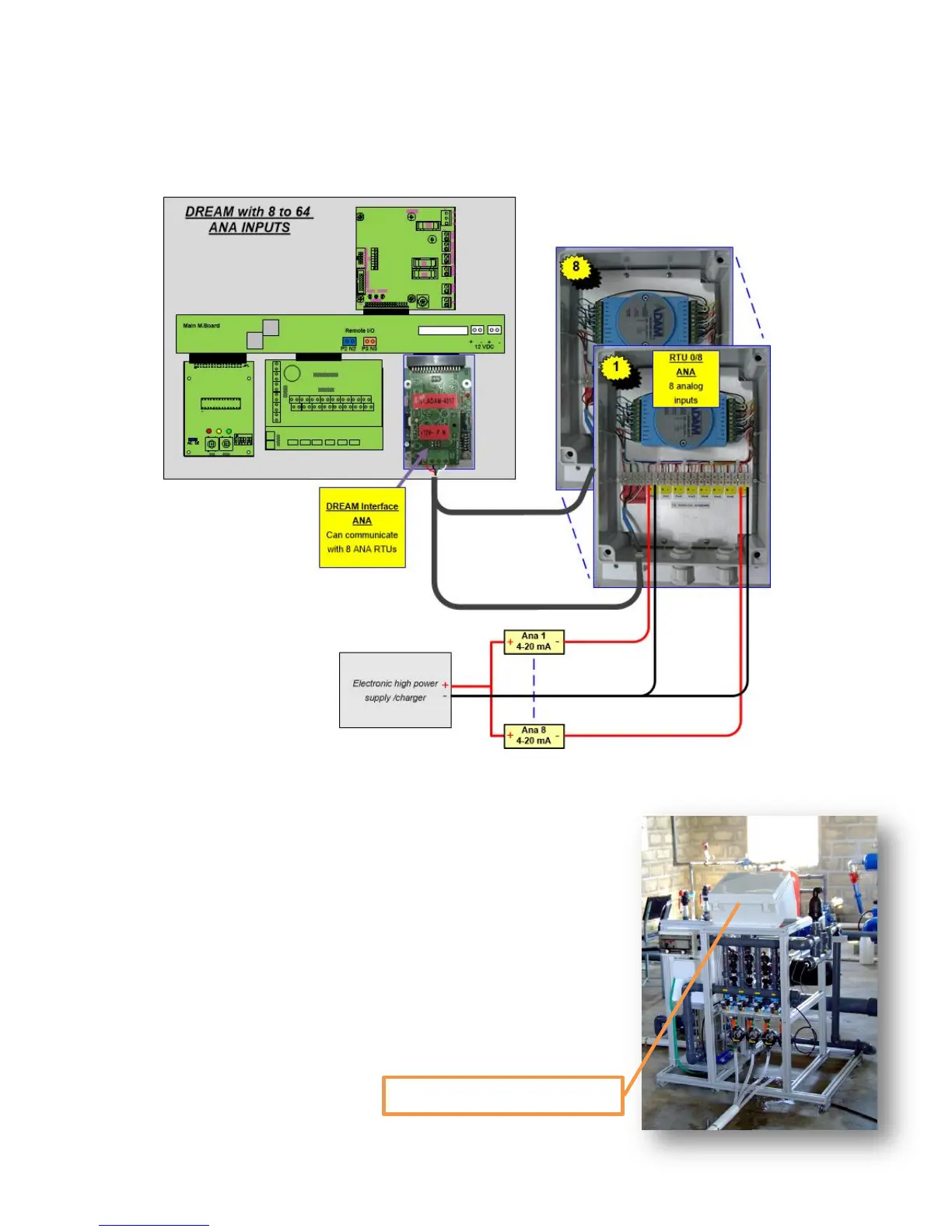 the following drawing. The interface utilizes special RTUs that can read 8 analog sensors each. Here