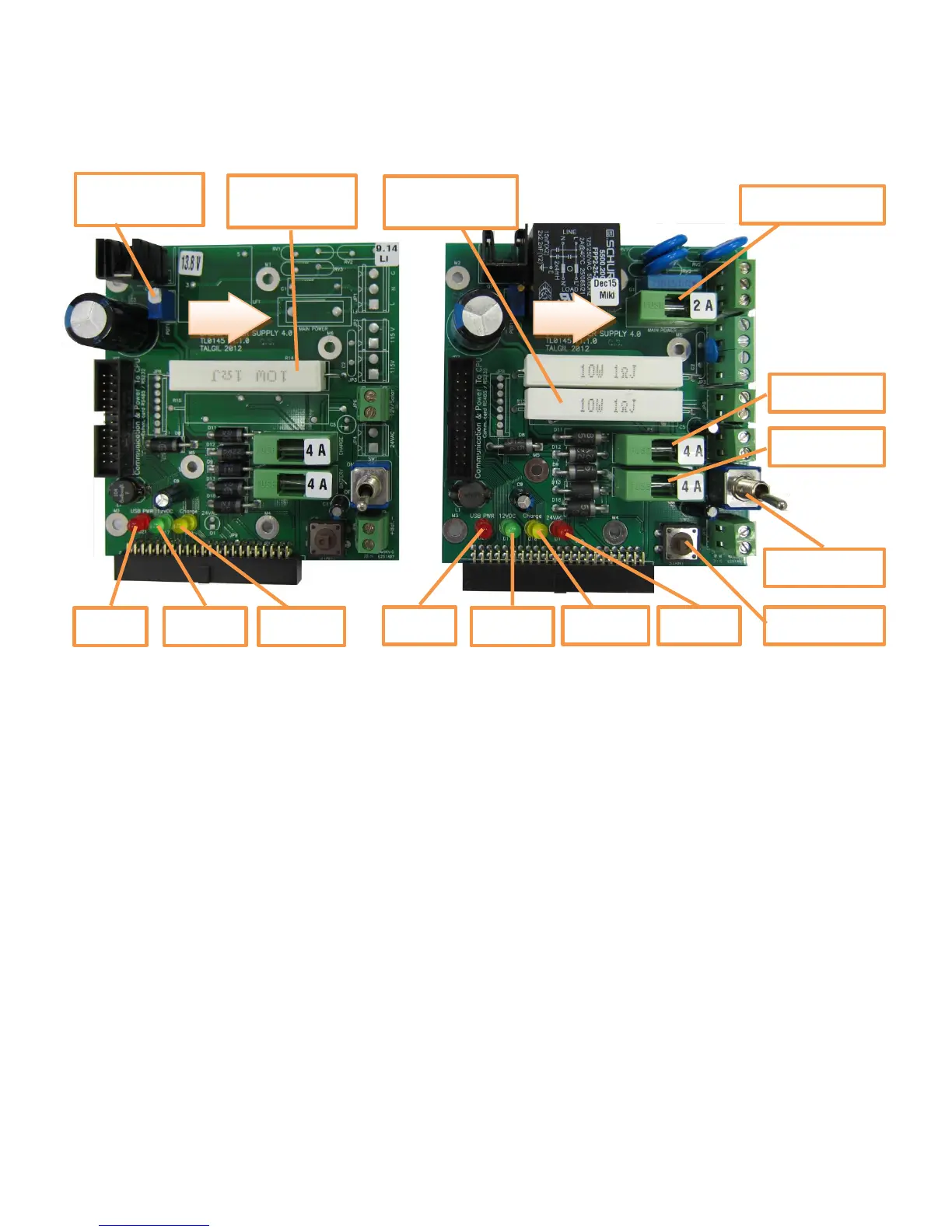 The drawing above shows the two options of power supply boards. The one on the left is the