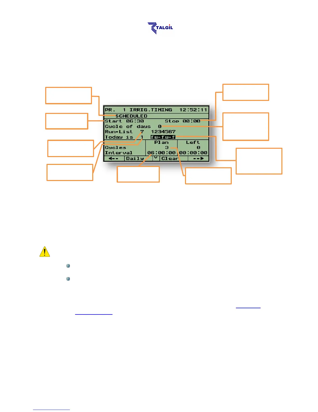 The lower part of the Irrigation Timing screen deals with Cyclic irrigation. If a