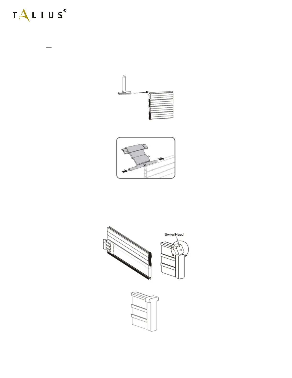 7.1b) Hanger Locks: Slide the Talius hanger locks onto the top profile of the rollshutter curtain, spacing them evenly and