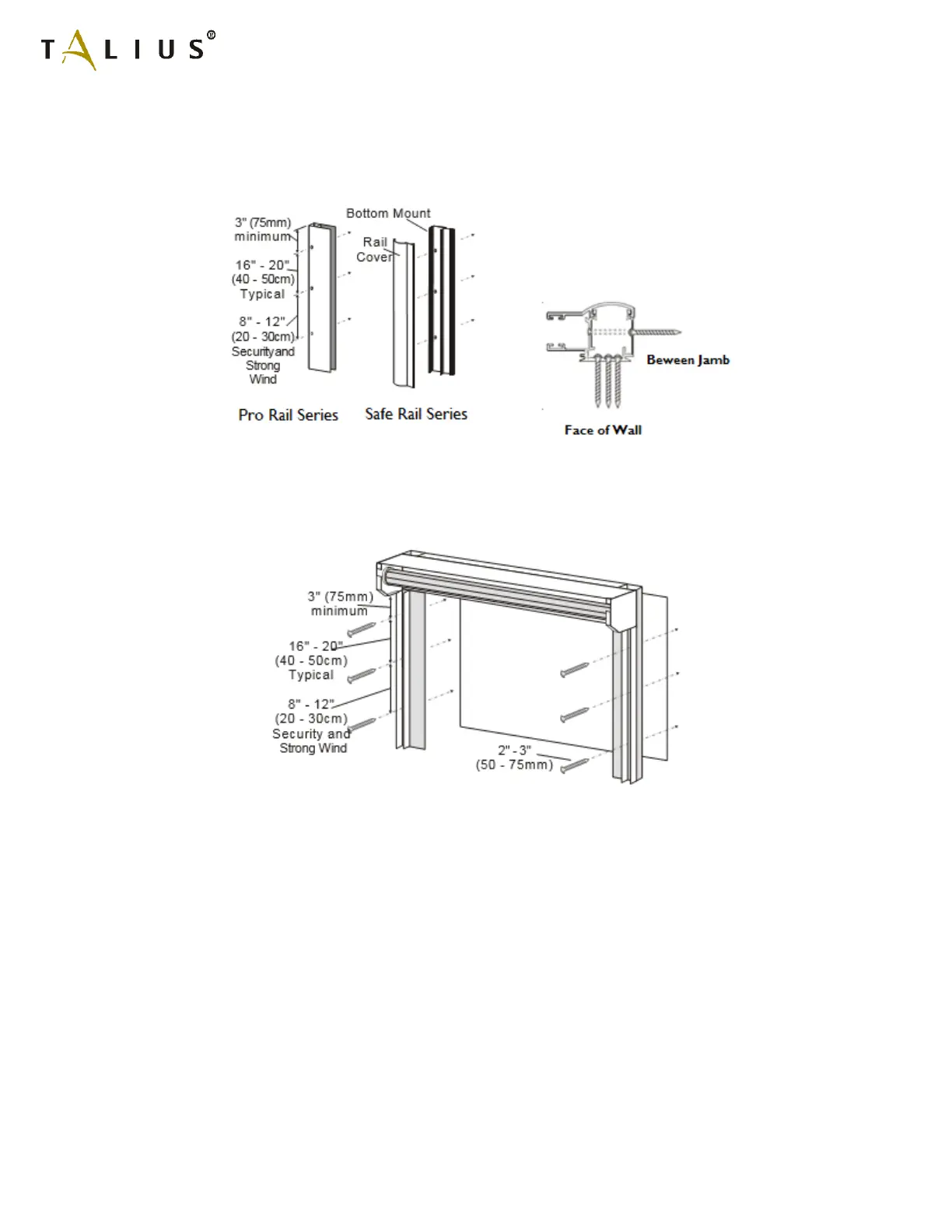 In this section the framework will be attached to the opening. Note that some guide rails are not symmetrical and carry