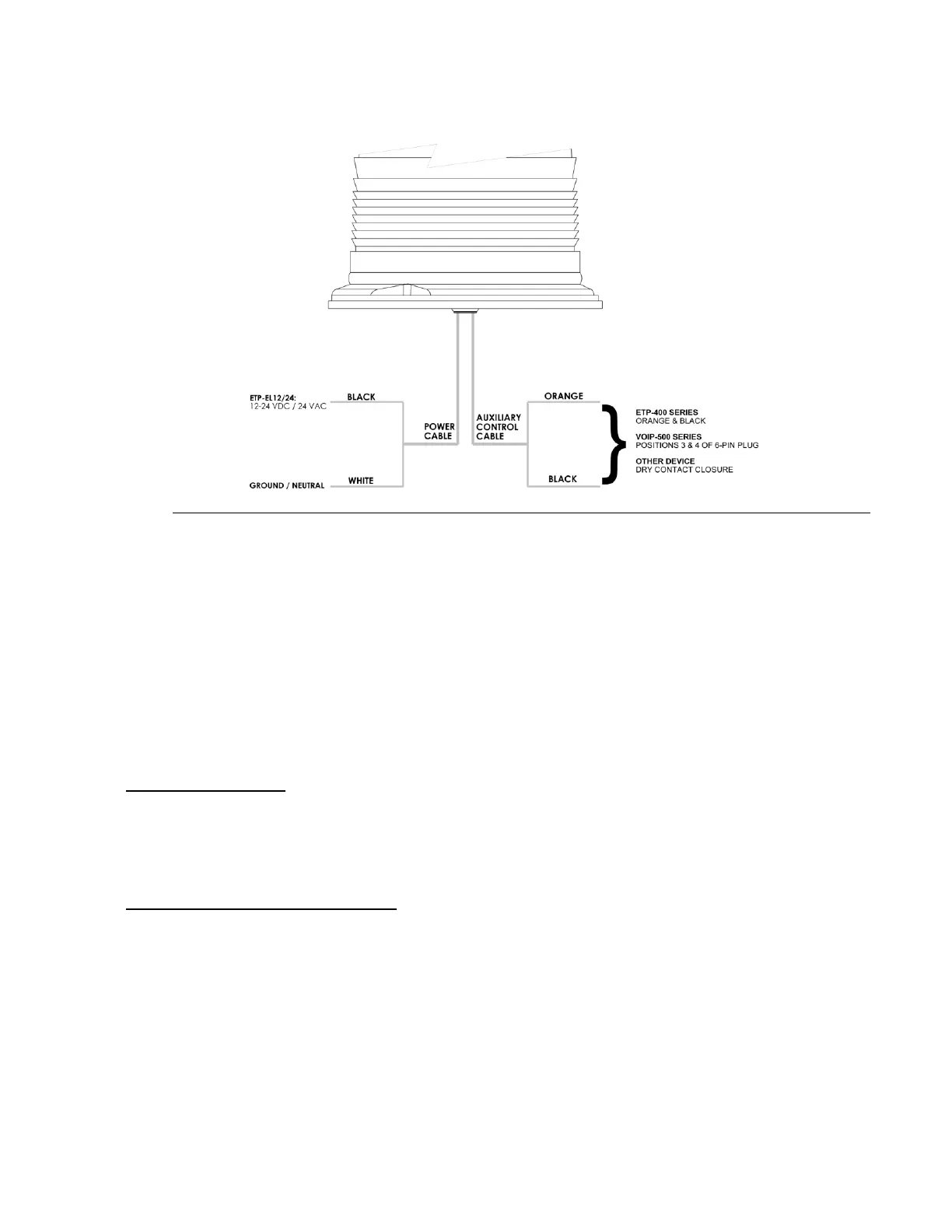 7. When using the ETP-EL Series LED Blue Light with VOIP-500 Series Emergency Phones, connect the