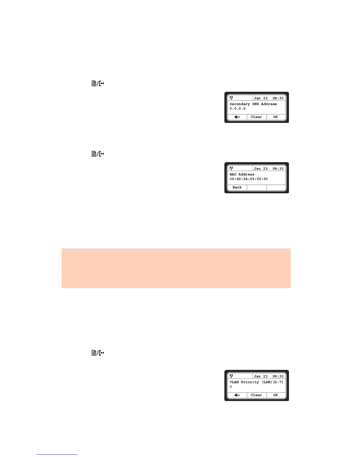 Changing the VLAN parameters requires a reboot of the IP phone. When you exit the menu, you will receive a reboot