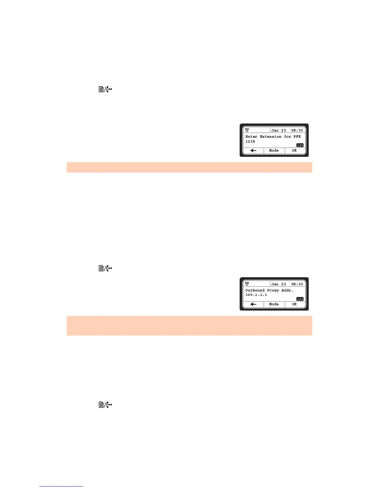 • Press the button, then select 2. SIP Configuration, then 2. Outbound Proxy Addr.
