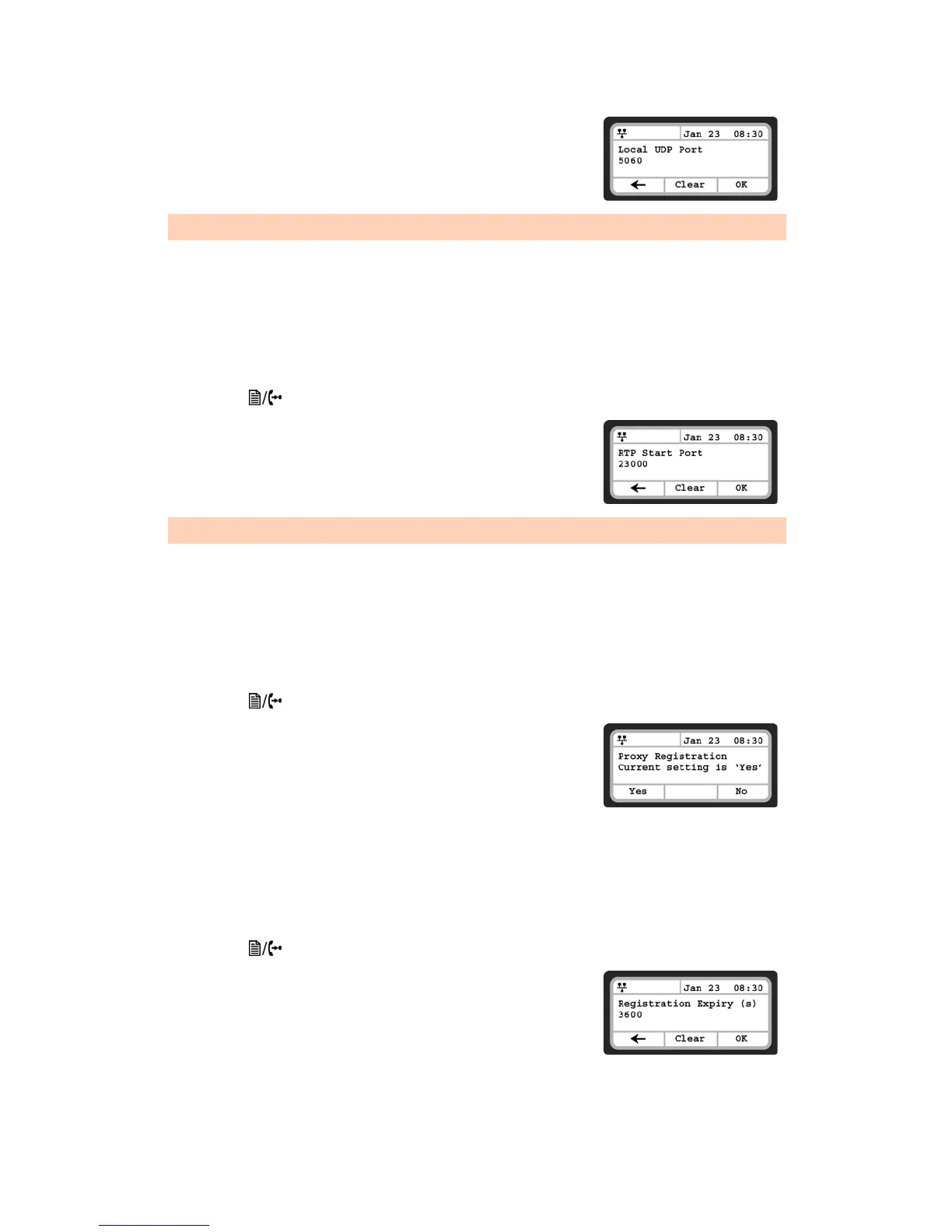 • Press the button, then select 2. SIP Configuration, then 8. Proxy Registration.
