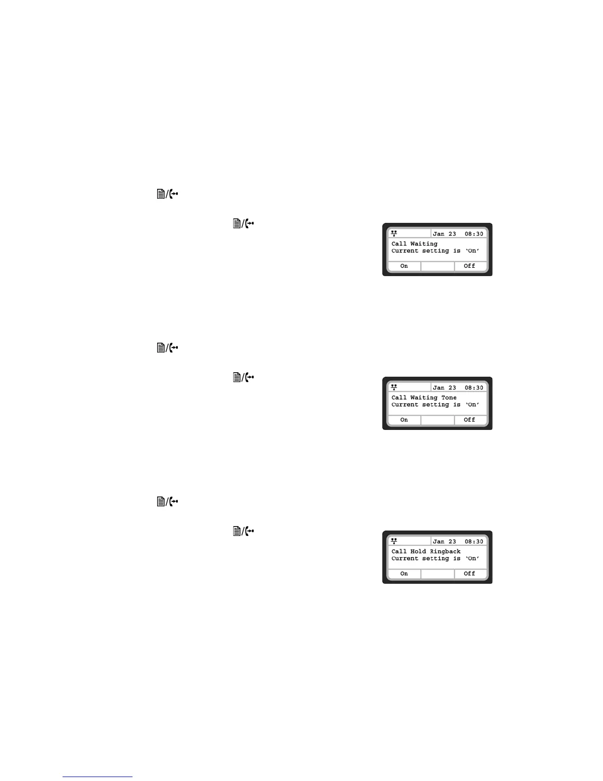 • Press the On softkey to enable hold ringback, or press the Off softkey to disable hold ringback.