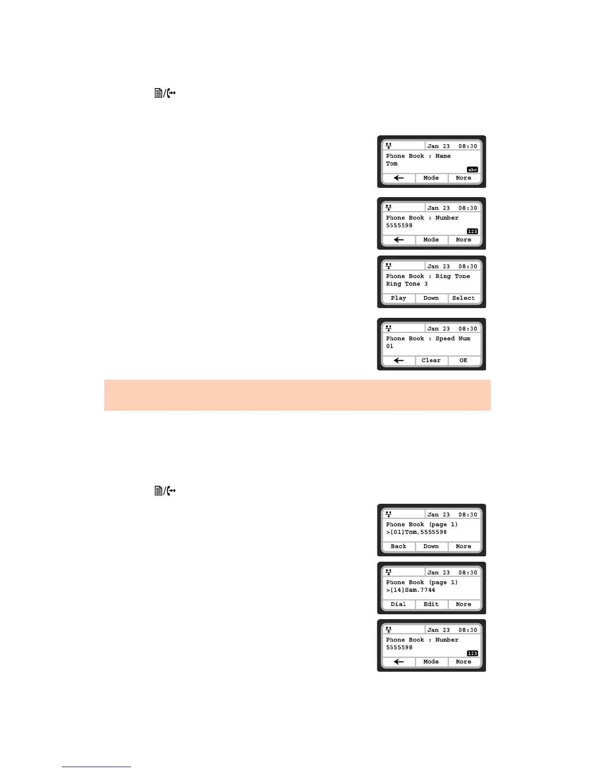 • Press the button, then select 5. Directory, then 1 .Phone Book.